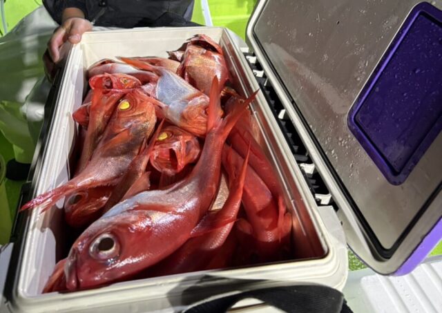釣果情報 11月14日半夜船釣果 半夜キンメ・クロムツ船魚種: キンメ 25~43cm 38~40尾その他: クロムツポツポツと交じる最初は大型のクロムツがポツポツと揚がりすぐにキンメの魚影濃くなり、終わりまでバクバクでバリバリの絶好調でしたね皆さんクーラーズッシリでしたね... 2025.11.15 釣果情報