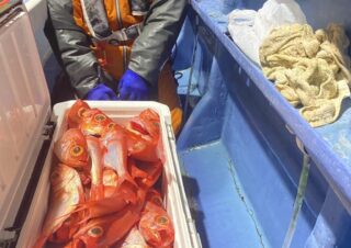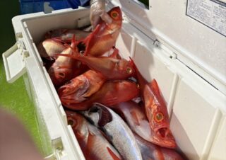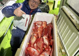 釣果情報 1月21日半夜船 半夜キンメ・クロムツ船魚種: キンメ 25~42cm 28~40尾今日も喰い良く、バリバリズラズラとやれましたサイズも良かったですね皆さんクーラーずっしりでしたよ今後も期待十分ですね22日 半夜キンメ・クロムツ船・空席多数で募集中23日 半... 2026.01.22 釣果情報